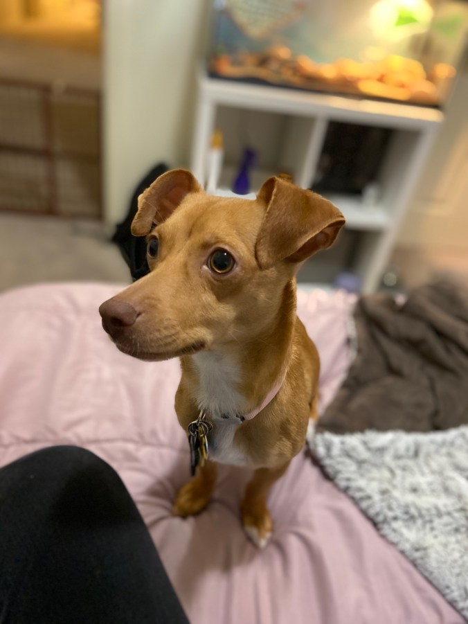 I have a young dog, Rosie, she’s about a year and four months. I adopted her from the Southwest Humane Society in Vancouver. I’ve been training her, she’s the first dog I’ve trained on my own. I used to help my dad train our dogs. Currently we’re working potty training and basic commands. She’s doing well with it. Of course there’s accidents and she doesn’t always listen but with time I think she will do well. When I first got her from the humane society there was a few issues with her health. She had just been spayed and she hadn’t been wearing a cone, which wasn’t good because her stitches were dissolvable and it could’ve caused them to open up her incision. I got her one so it kept her from licking her stitches and her incision has healed very well since. She also had kennel cough and a fever. I took her to the vet and got antibiotics for her. I have other dogs at home so I had to isolate her from the other dogs, she really did not like that.
