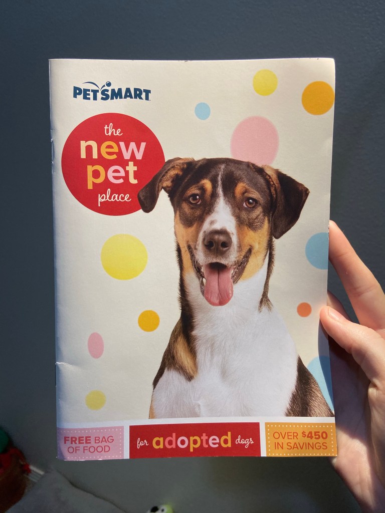Also if you’re adopting a dog or cat from any humane society, PetSmart will give you a coupon book worth $450 of savings for free. Including a free exam at their Banfield Veterinary Clinic and many other amazing deals to help you with your new dog.